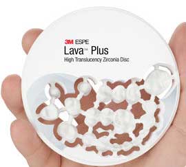 3M Lava™ Plus High Translucency Zirconia is the next generation of Lava™ Frame Zirconia that has proven its reliability in more than 10 years of clinical history. The Lava™ Plus System is designed to enable unprecedented Lava™ Zirconia esthetics with uncompromised strength. Esthetics is determined by the viewing light, the observer and finally the optical properties of the restoration: Restorations reflect, scatter or absorb part of the viewing light while the remainder is transmitted. Theses optical properties depend on the surface texture, the chemical composition and the microstructure of the materials used. Simplified one can say that the potential of a restoration material to mimic tooth structure is determined by its color and translucency. Lava™ Plus is a complete zirconia restoration system offering a high translucency combined with a unique shading solution for full color control.